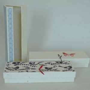 Es werden 2 Schachteltypen gefertigt: Zuerst wird in handwerklicher Ausführung eine Schachtel für Stifte oder Schmuck mit Klappdeckel hergestellt.