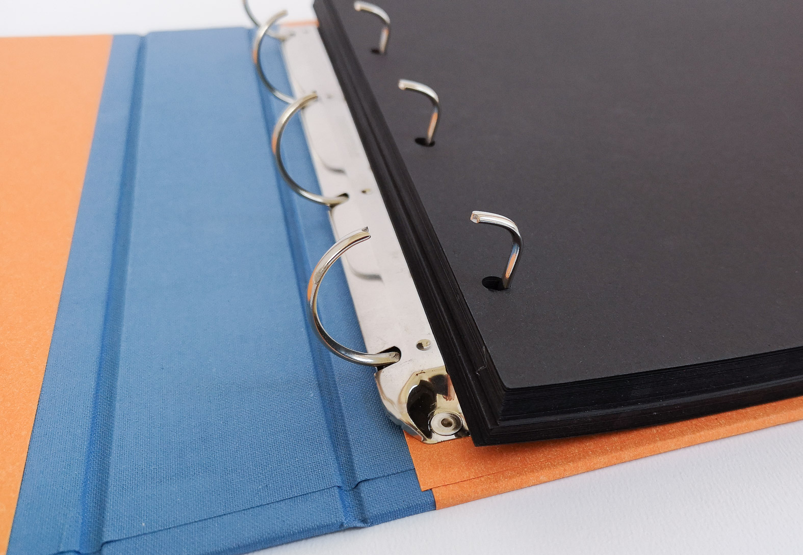Sammelordner mit vierfach gelochten Fotokartoneinlagen in schwarz oder weiß